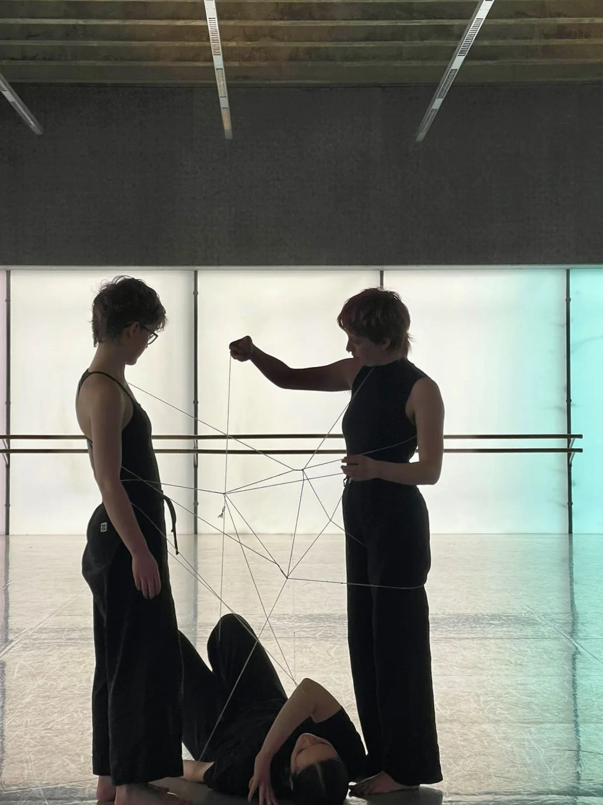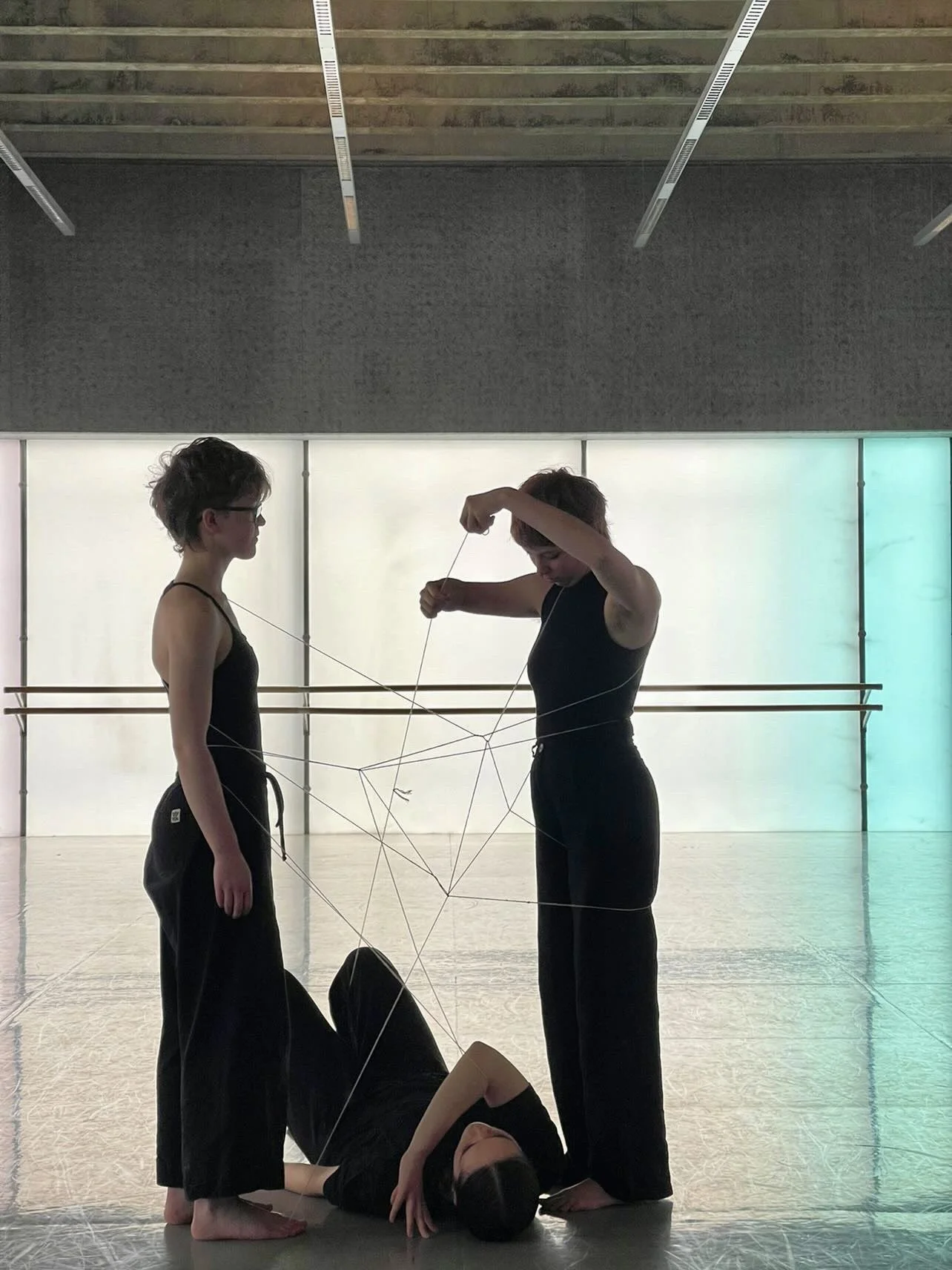 The Cat’s Playground is an invitation, a disruption — a curiosity about space. Three dancers, connected by a single piece of string, explore and reveal the architecture around them through shapes, lines, and geometric play.